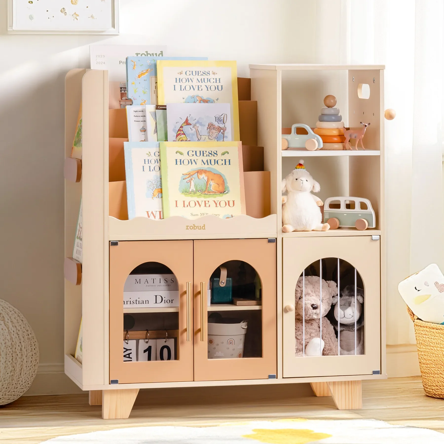 Made with high-quality wood and a scratch-resistant finish, this unit is built to withstand the demands of busy little hands. Its stable structure ensures durability for years of reading, playing, and organizing.