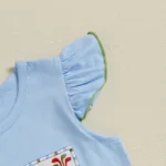 Baby girl tank top with golf embroidery, round neckline, and fly sleeves; Baby girl shorts with plaid print, ruffle hem, and elastic waist to ensure a snug fit; Simple yet stylish, perfect summer clothing